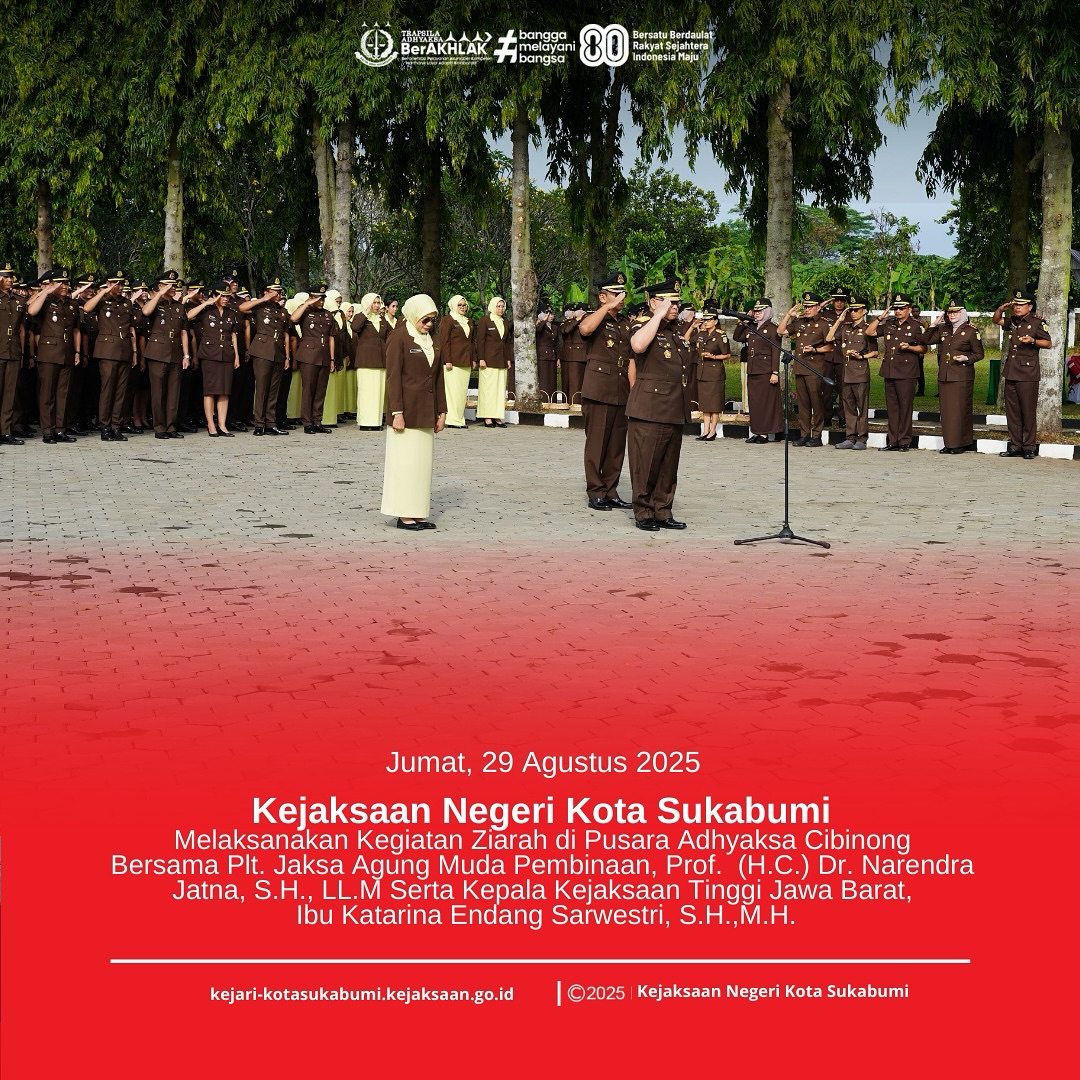 Bahwa upacara ziarah dipimpin langsung oleh Plt. Jaksa Agung Muda Pembinaan, Prof. (H.C.) Dr. Narendra Jatna, S.H., LL.M., kegiatan dilanjutkan dengan tabur bunga sebagai bentuk penghormatan kepada para pahlawan dan pendahulu Korps Adhyaksa.